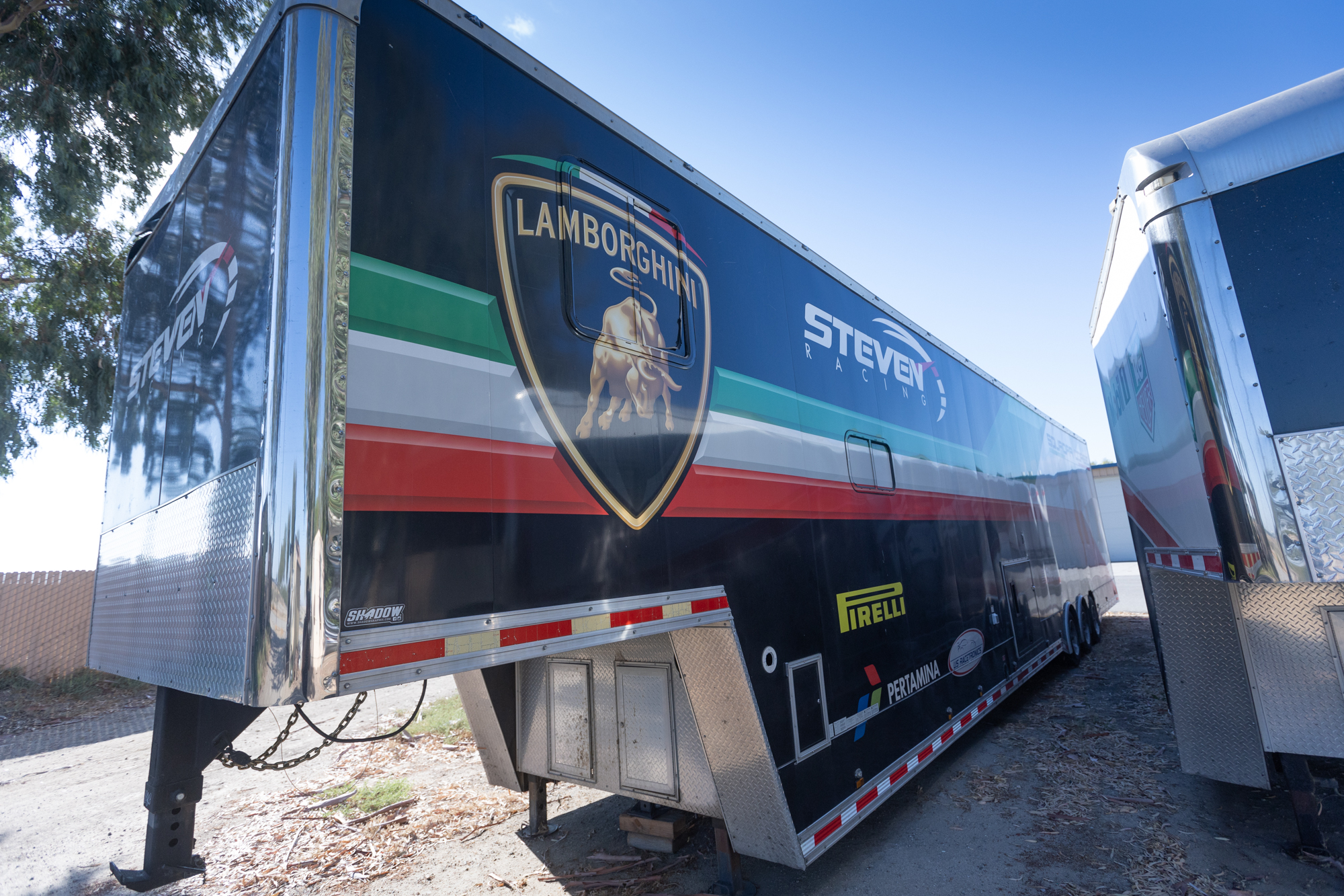 This fully loaded 50' double stacker race trailer is built for serious track support and comfort. Outfitted with a Milwaukee toolbox and assorted tools, it also features a coaching room/driver’s lounge complete with storage and TV, plus a kitchenette with fridge, microwave, and cabinetry—perfect for long weekends at the track.